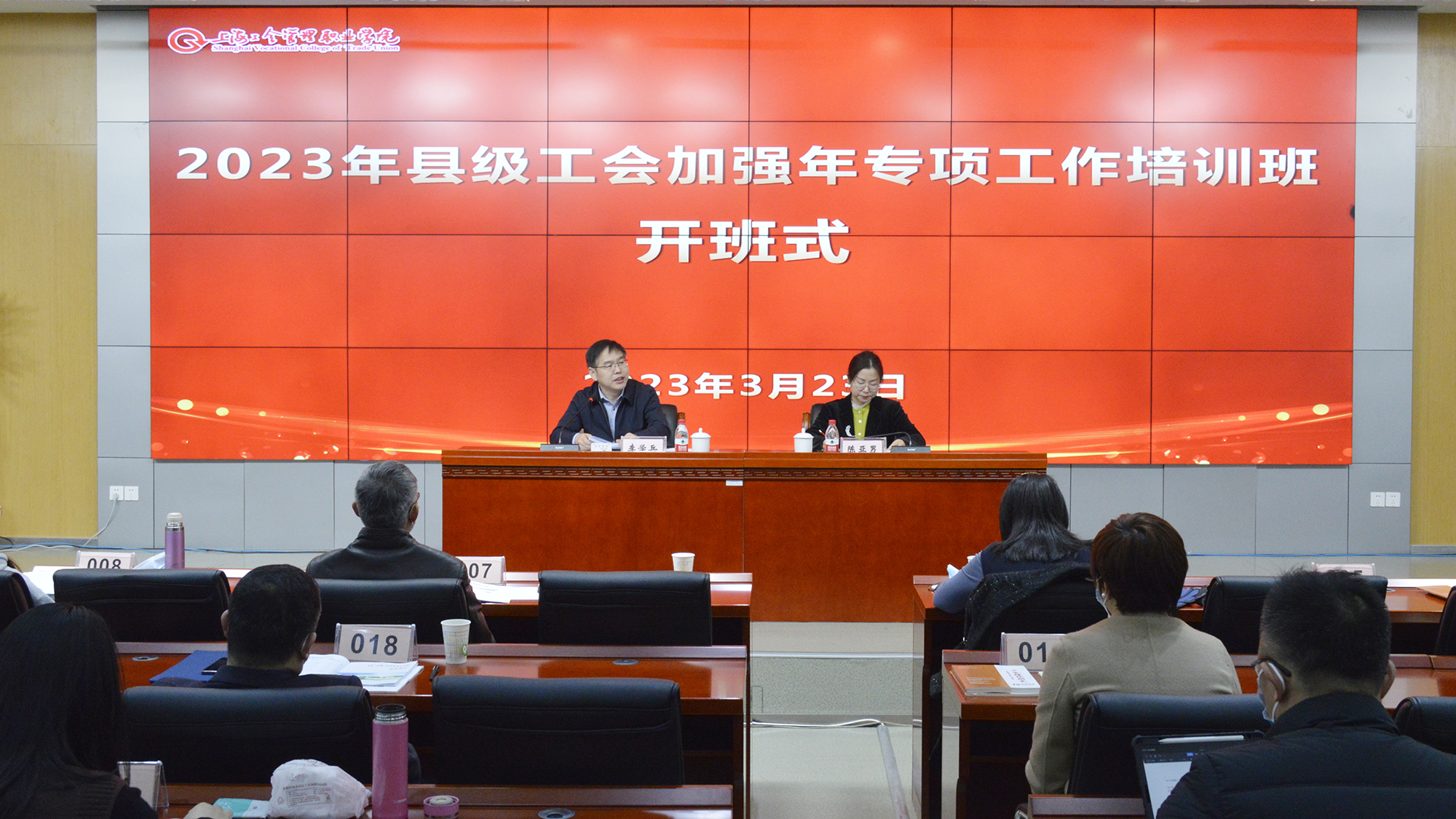 3月23日至24日,由市总工会主办,工会学院承办的县级工会加强年专项工作培训班在我院吉林路校区举办。来自全市各街镇、园区的50余名专职工会主席参加了培训。学院党委委员、副院长李学兵出席开班式,并以“学习贯彻党的二十大精神 准确把握当前工会工作的形势任务”为题做了辅导报告。学院党委副书记、纪委书记、工会主席马景红到培训班参加了结业式。
