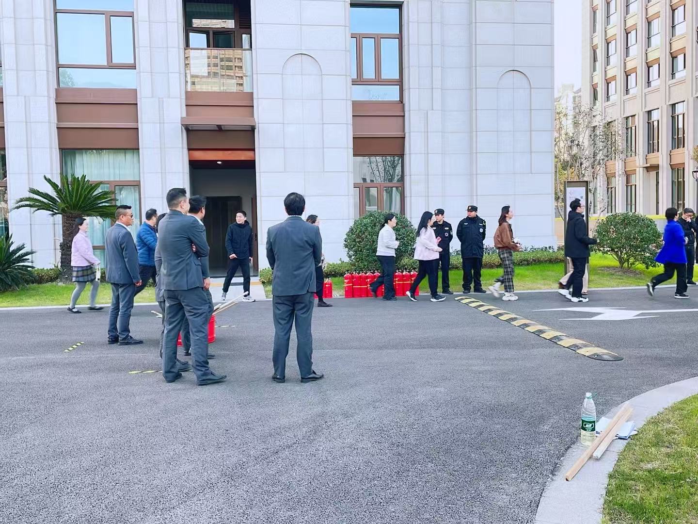 演练信号发出后,物业人员进行引导疏散,教职工迅速弯腰、捂鼻,按照逃生路线迅速疏散。短短几分钟内,全体教职工便安全撤离至指定集合点,完成了本次疏散任务。
