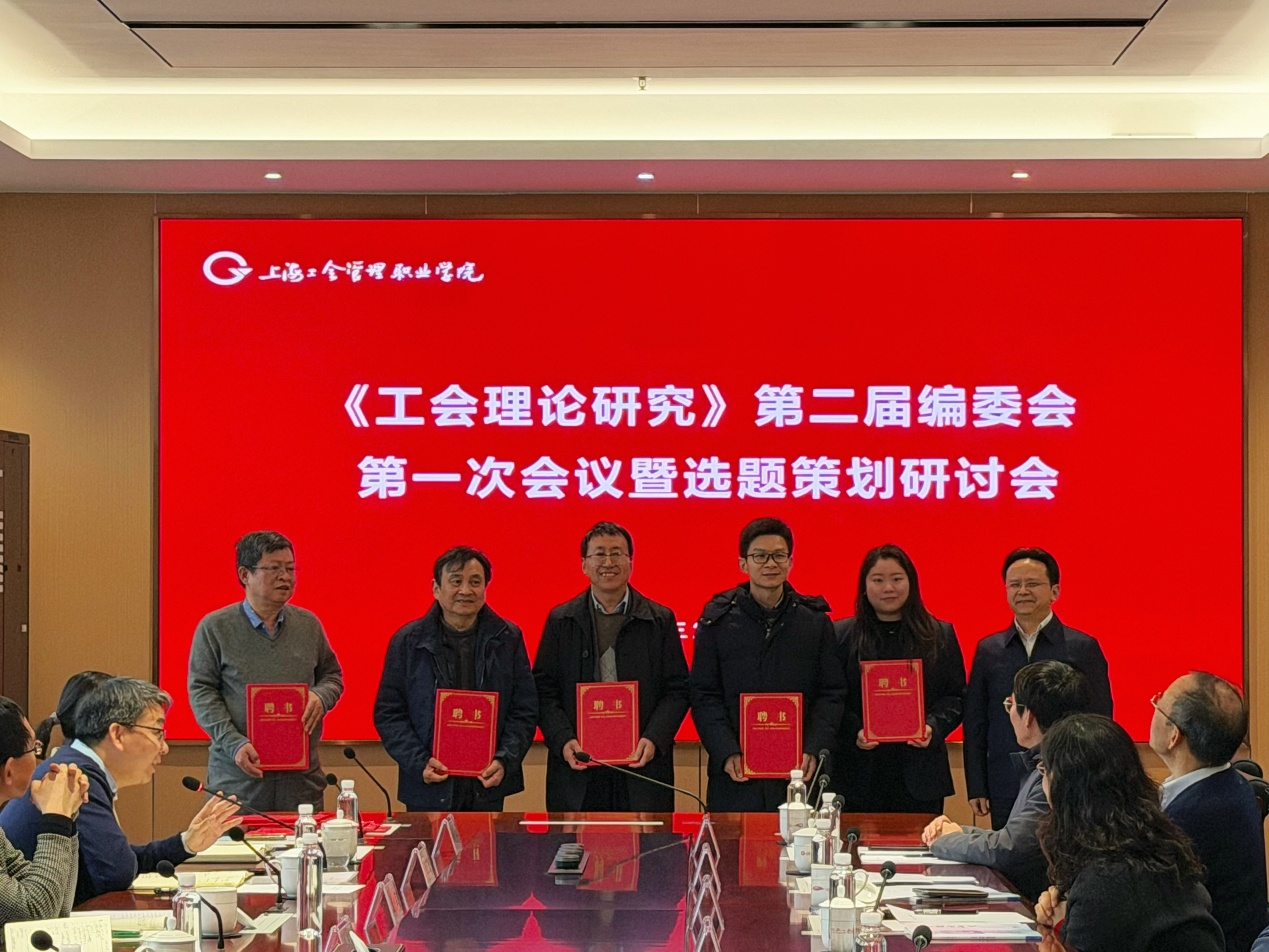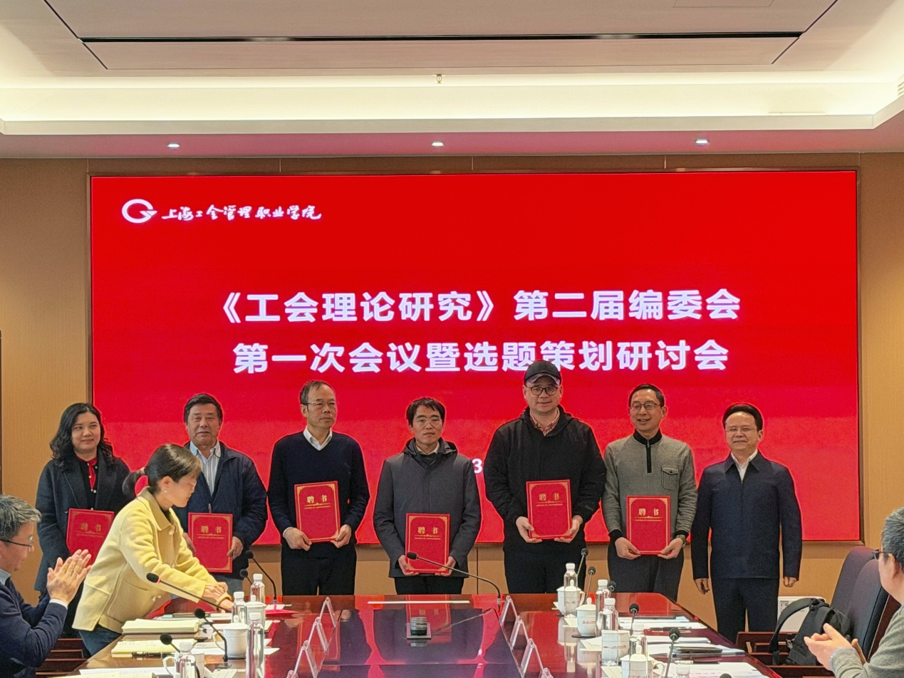2026年3月18日,工会学院学报《工会理论研究》第二届编委会第一次会议暨选题策划研讨会在宝山校区召开。《工会理论研究》第二届编委会11位编委及2位学术顾问,学院党委副书记、院长、学报主编李友钟,学院副院长李学兵出席会议,学院副院长邹卫民主持会议。会上,李友钟院长向与会学报编委和学术顾问赠发聘书并合影。