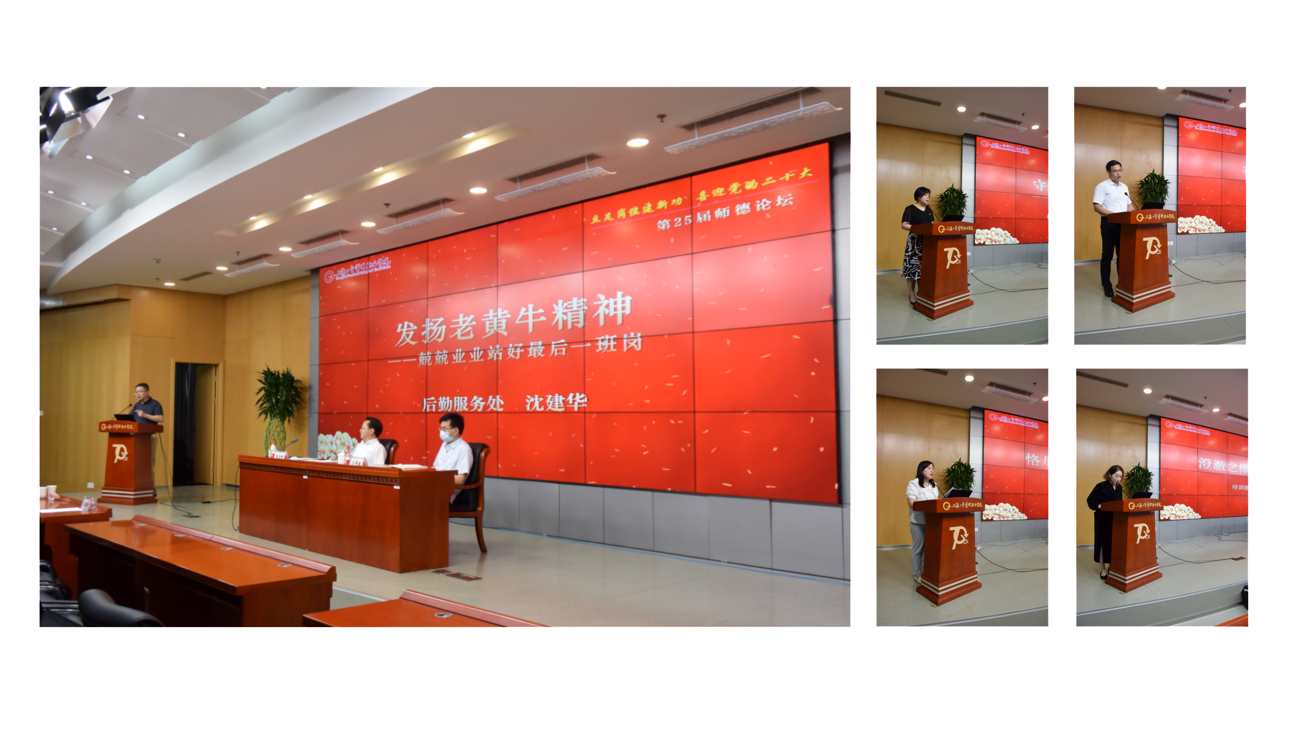 让身边人讲好身边事,以身边事激励身边人,是师德论坛的优良传统。师德论坛上,班主任代表、培训部潘秋烨作交流发言《澄澈之缘 初心恒定》;青年教师代表、教学部杨轶波作交流发言《在学习中成长》;党务工作者代表、党政办公室的徐振珏作交流发言《恪尽职守 臻于至善》;挂职干部代表、组织人事处洪晓敏作《守于心 立于行——我眼中的市总机关干部》;行政管理人员代表、后勤服务处沈建华作《发扬老黄牛精神,兢兢业业站好最后一班岗》。