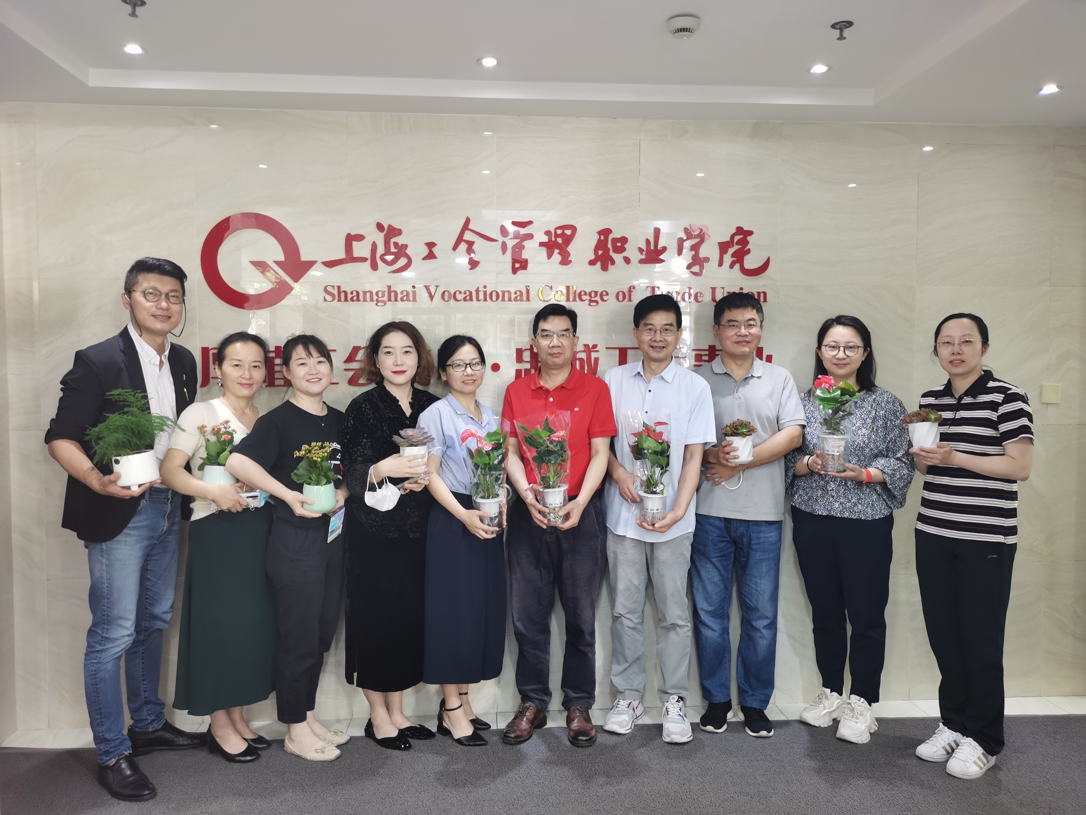 9月9日上午,学院党委书记王厚富,党委副书记、纪委书记、工会主席马景红一早就等候在一楼大厅,将鲜花或绿植盆栽亲自送到教职工手中,表达节日深深的问候与祝福。